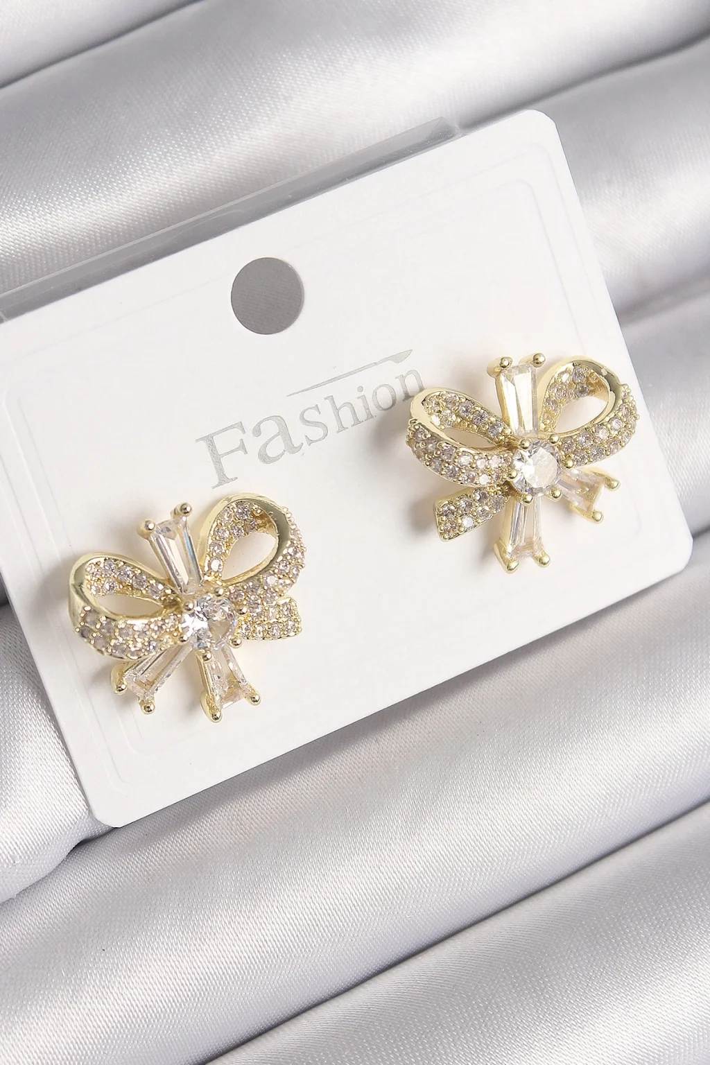 Pirinç Gold Renk Zirkon Taşlı Fiyonk Model Kadın Küpe