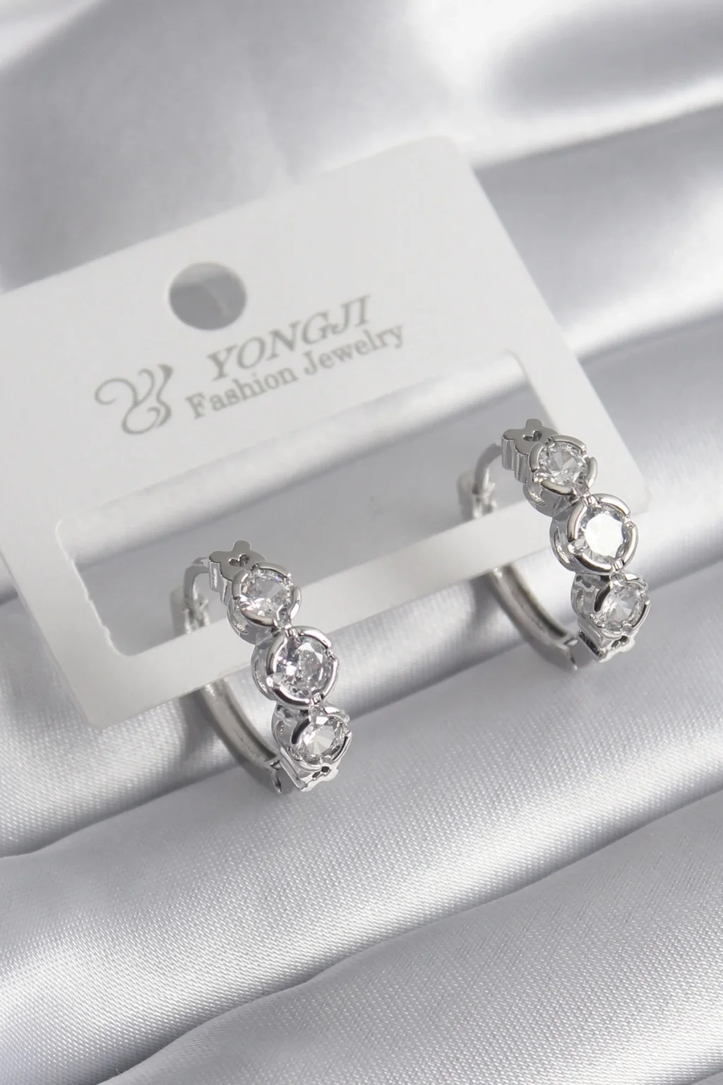 Pirinç Gold Renk Zirkon Taşlı Kalp Detay Kadın Küpe