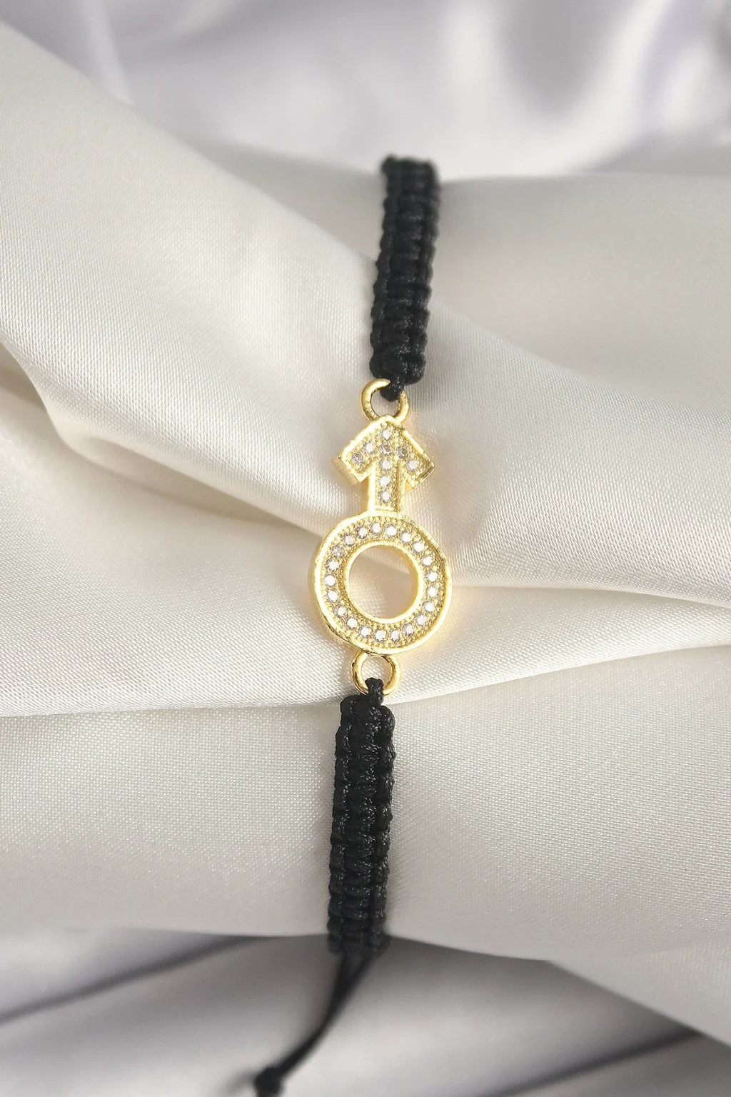Pirinç Gold Renk Zirkon Taşlı Mars Figür Asansörlü Makrome Model Kadın Bileklik