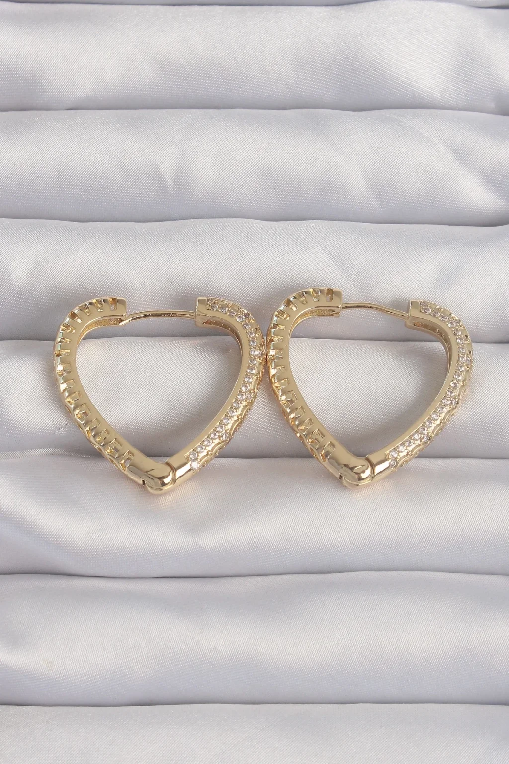 Pirinç Gold Renk Zirkon Taşlı Motifli Kalp Küpe