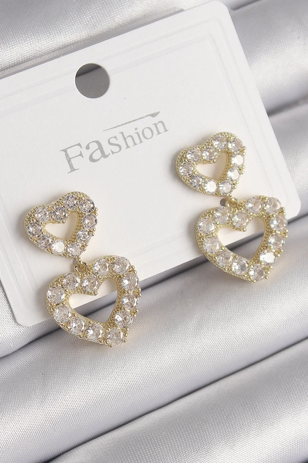 Pirinç Gold Renk Zirkon Taşlı Sallantı Kalp Model Kadın Küpe