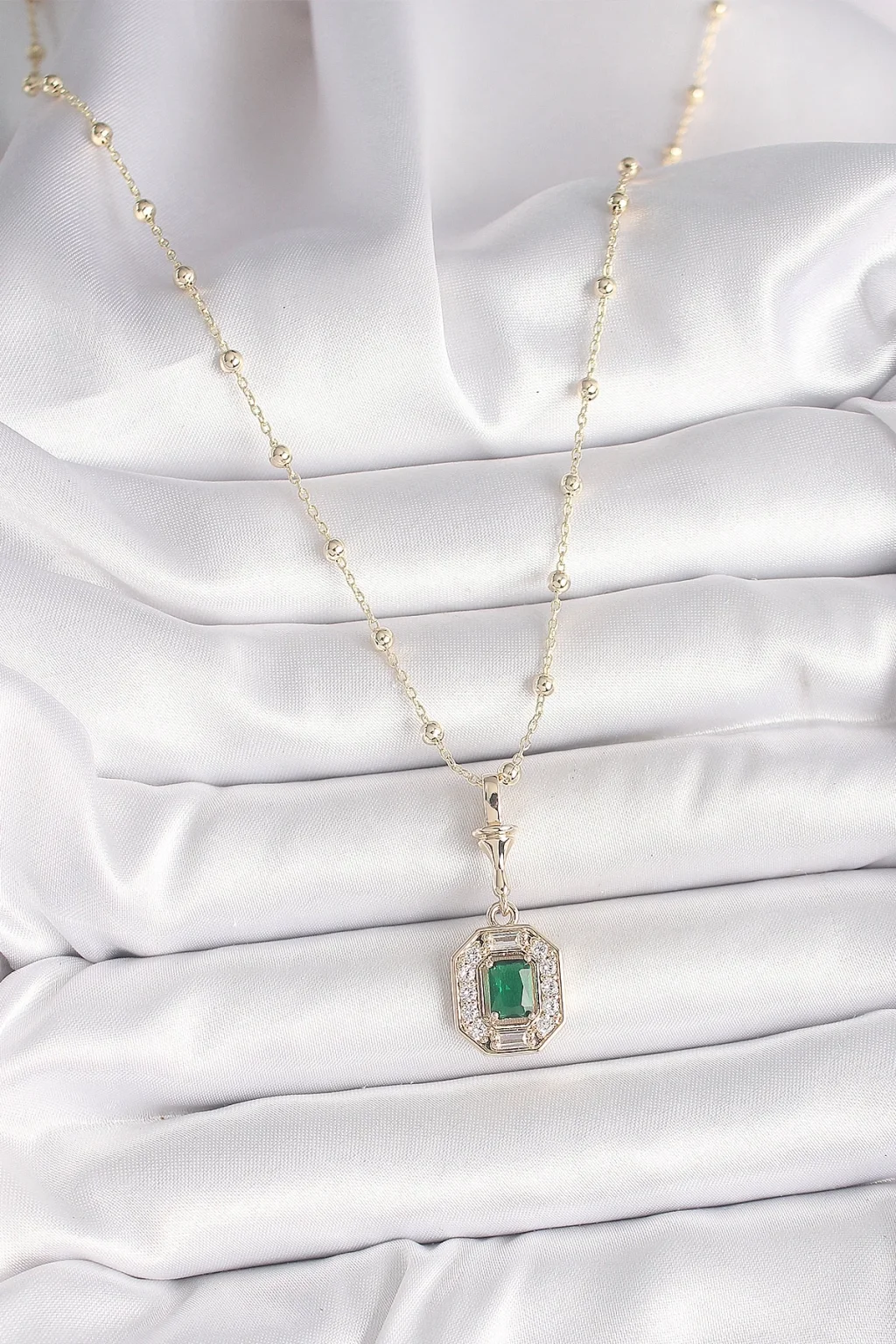 Pirinç Gold Renk Zirkon Taşlı Topçuk Zincir Serenay Model Kadın Kolye