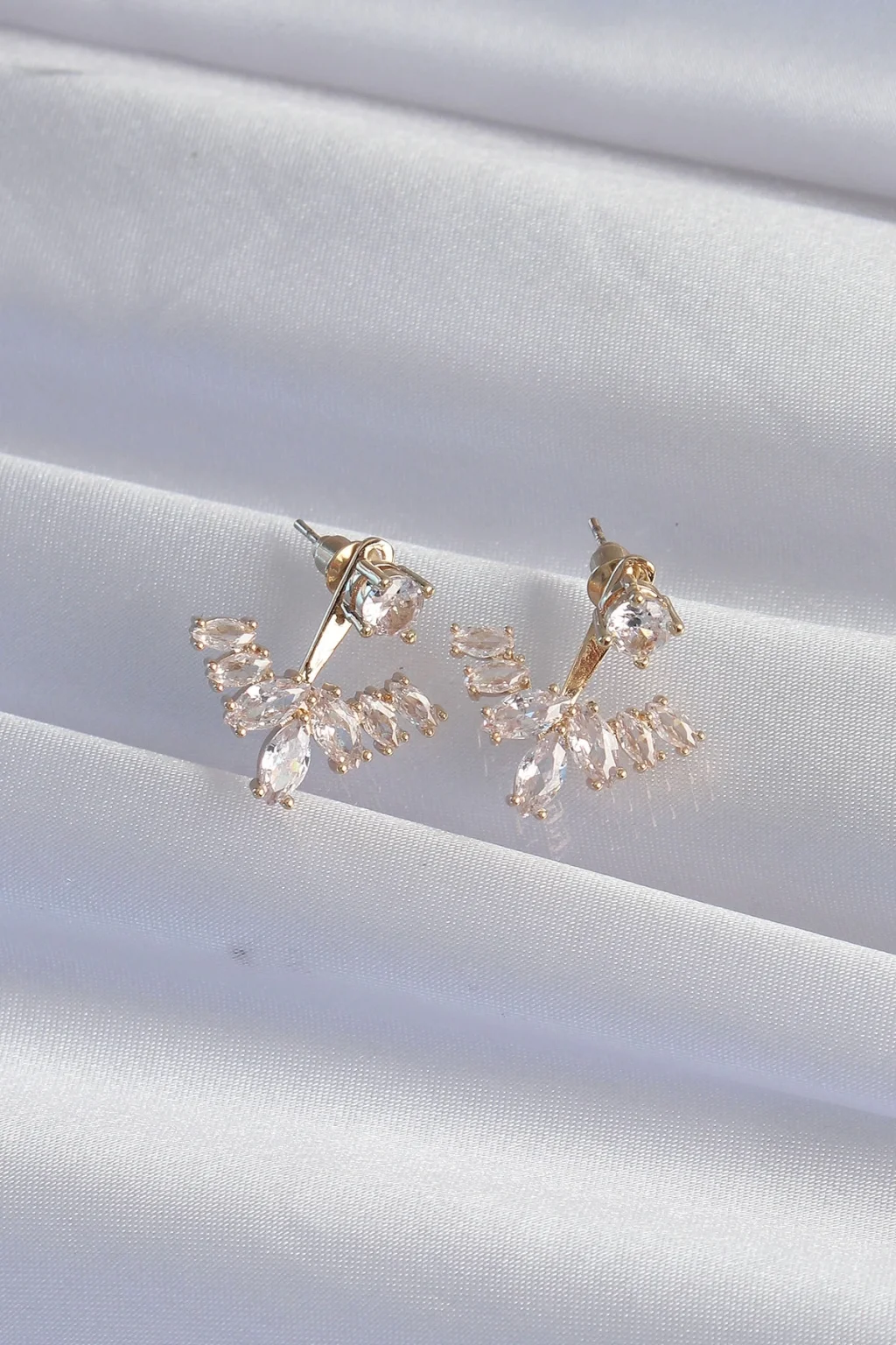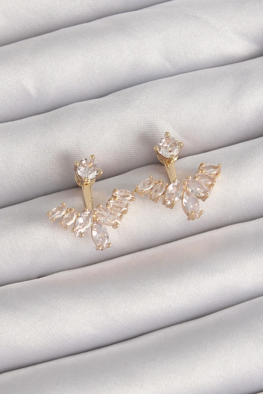 Pirinç Gold Renk Zirkon Taşlı V Model Küpe