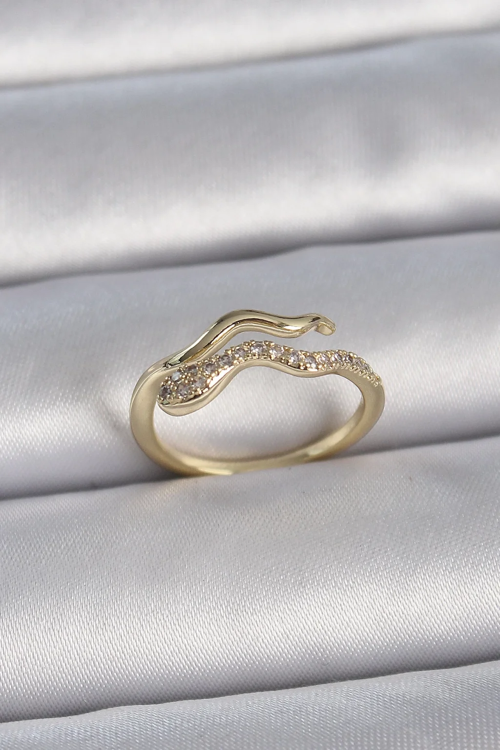 Pirinç Gold Renk Zirkon Taşlı Yılan Ayarlanabilir Model Kadın Yüzük