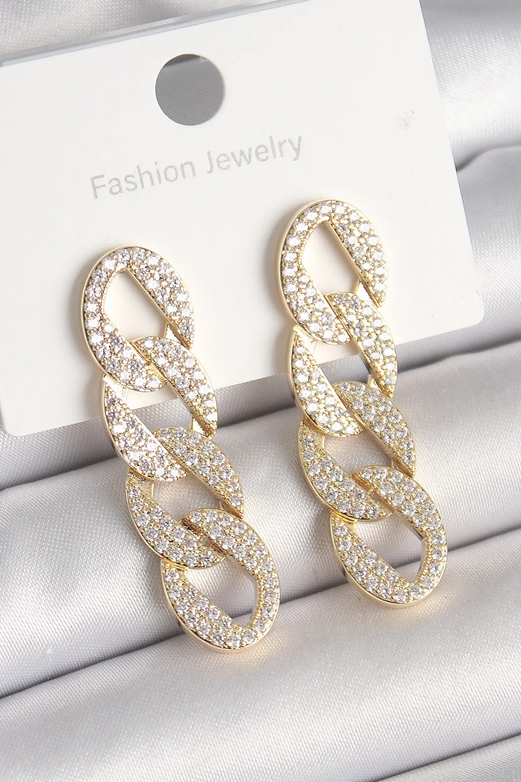 Pirinç Gold Renk Zirkon Taşlı Zincir Model Kadın Küpe