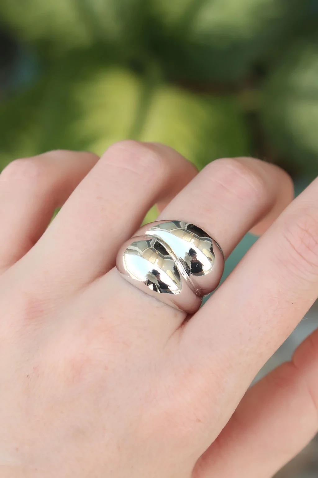 Pirinç Gümüş Renk Ayarlanabilir Damla Yüzük