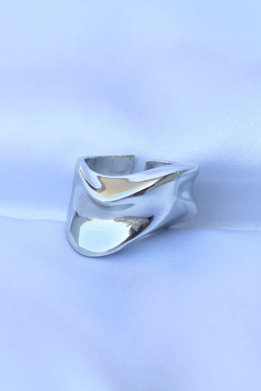 Pirinç Gümüş Renk Ayarlanabilir Kalın Ezme Yüzük
