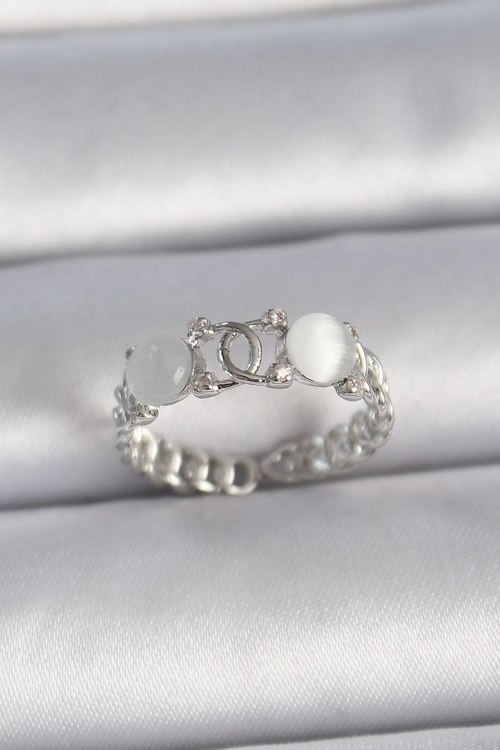 Pirinç Gümüş Renk Ayarlanabilir Zirkon Taşlı Beyaz Mineli Birleşik Halka Model Kadın Yüzük