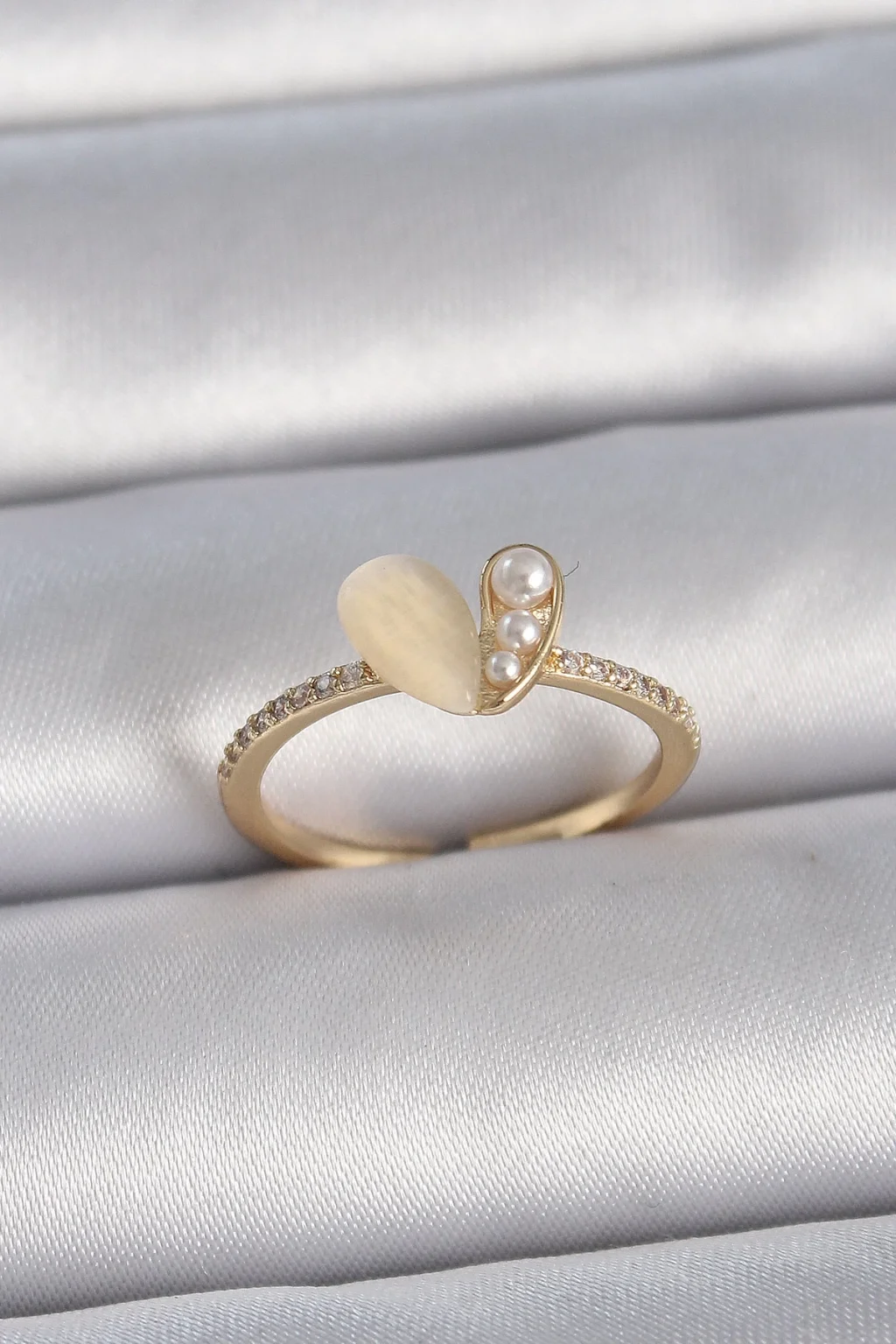 Pirinç Gümüş Renk Ayarlanabilir Zirkon Taşlı Beyaz Mineli Kalp Model Kadın Yüzük