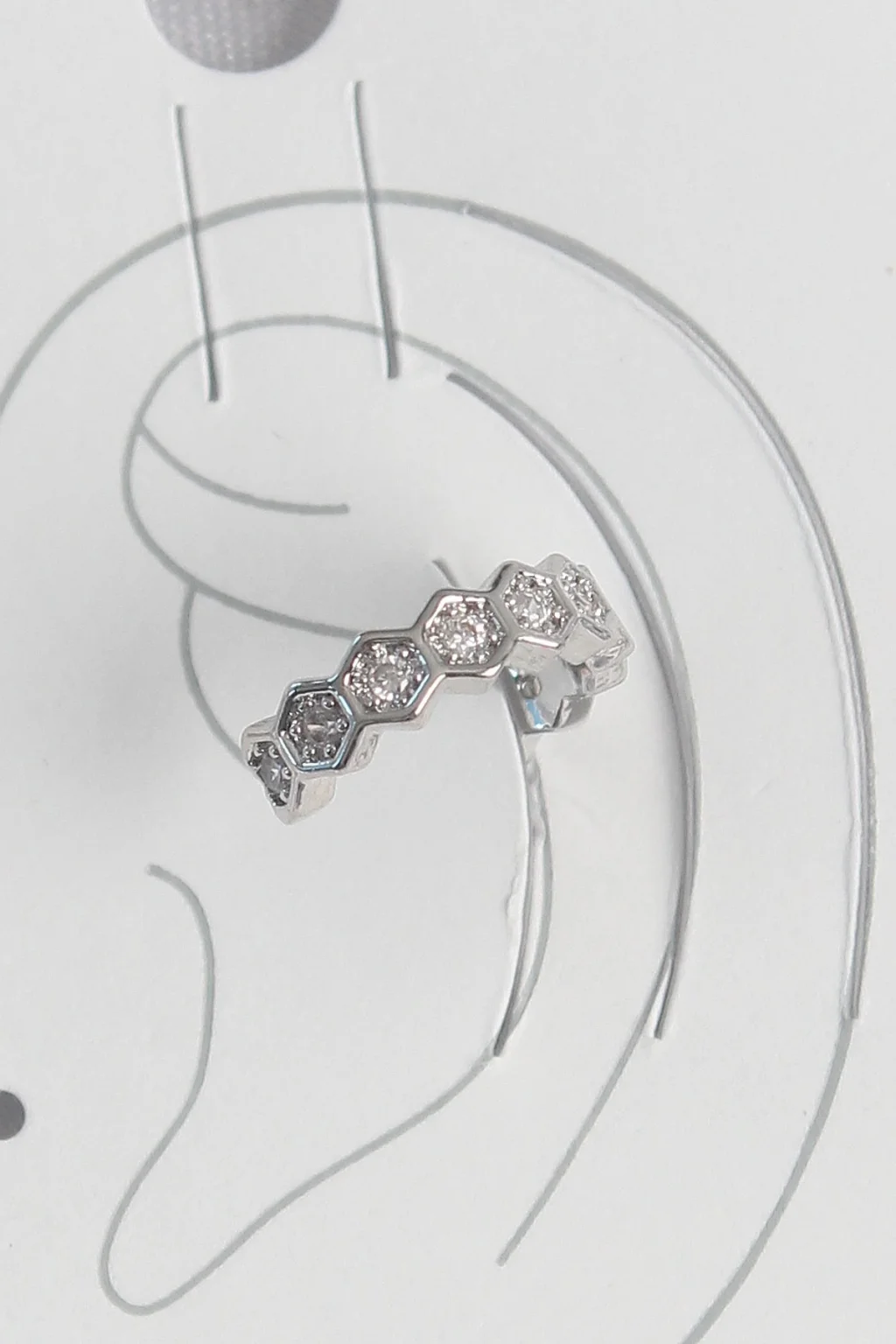 Pirinç Gümüş Renk Bal Peteği Model Zirkon Taşlı Kadın Kıkırdak Küpe