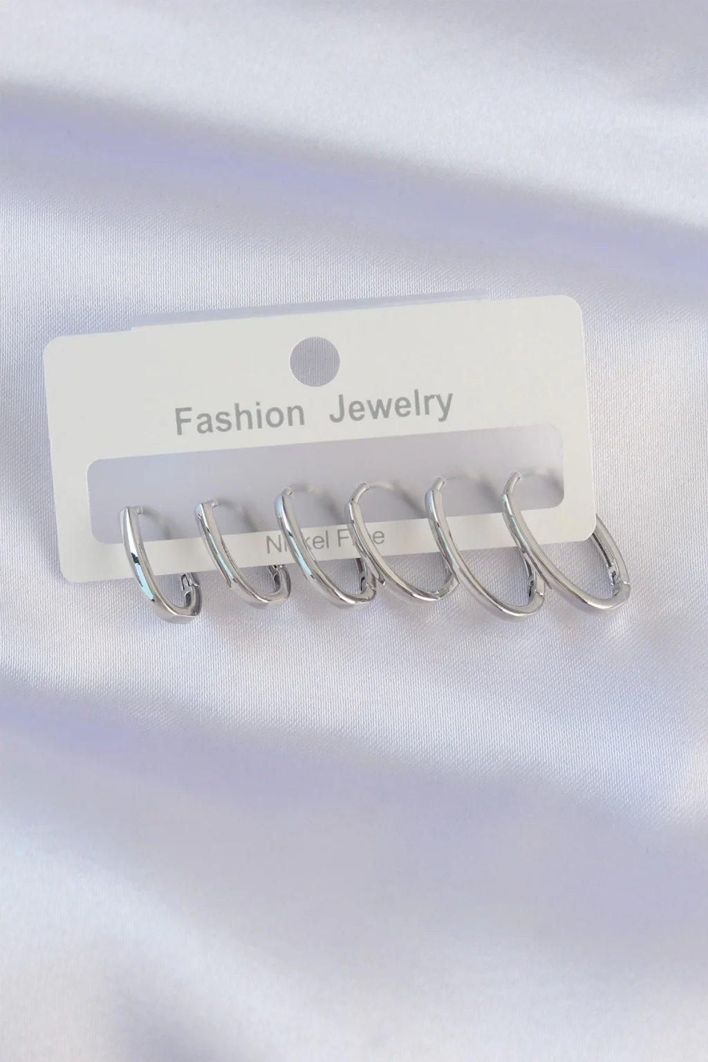 Pirinç Gümüş Renk İnce Oval Küpe Seti