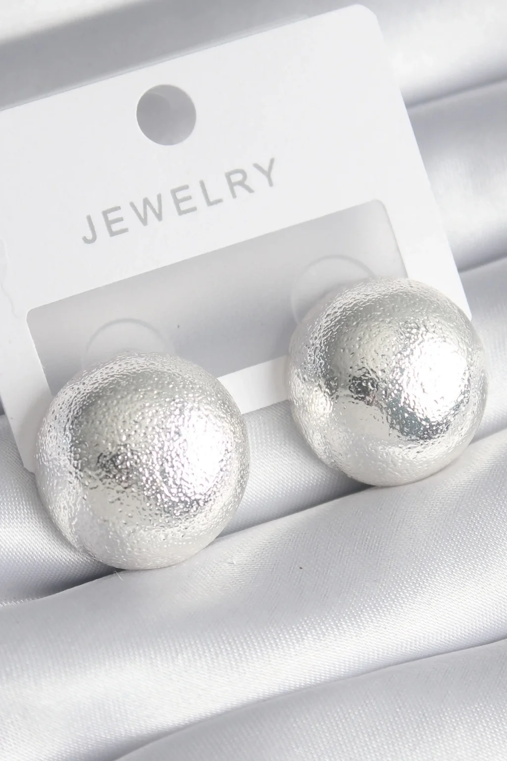 Pirinç Gümüş Renk İşleme Detay Top Model Kadın Küpe