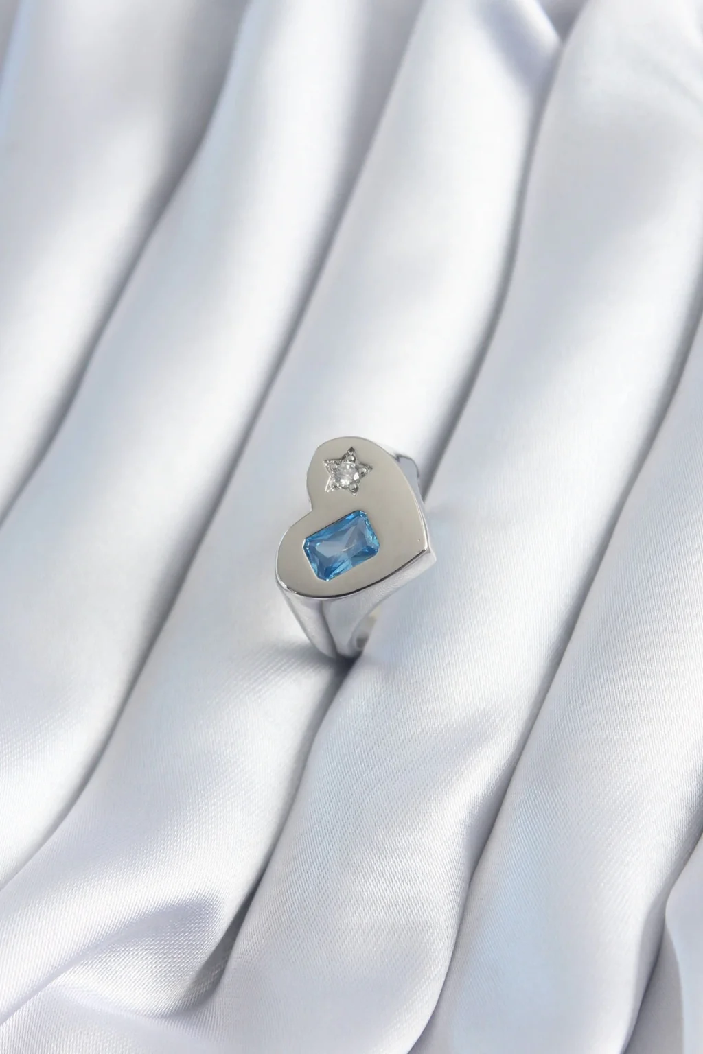 Pirinç Gümüş Renk Kalp Model Yıldız Zirkon Taş Detay Kadın Yüzük
