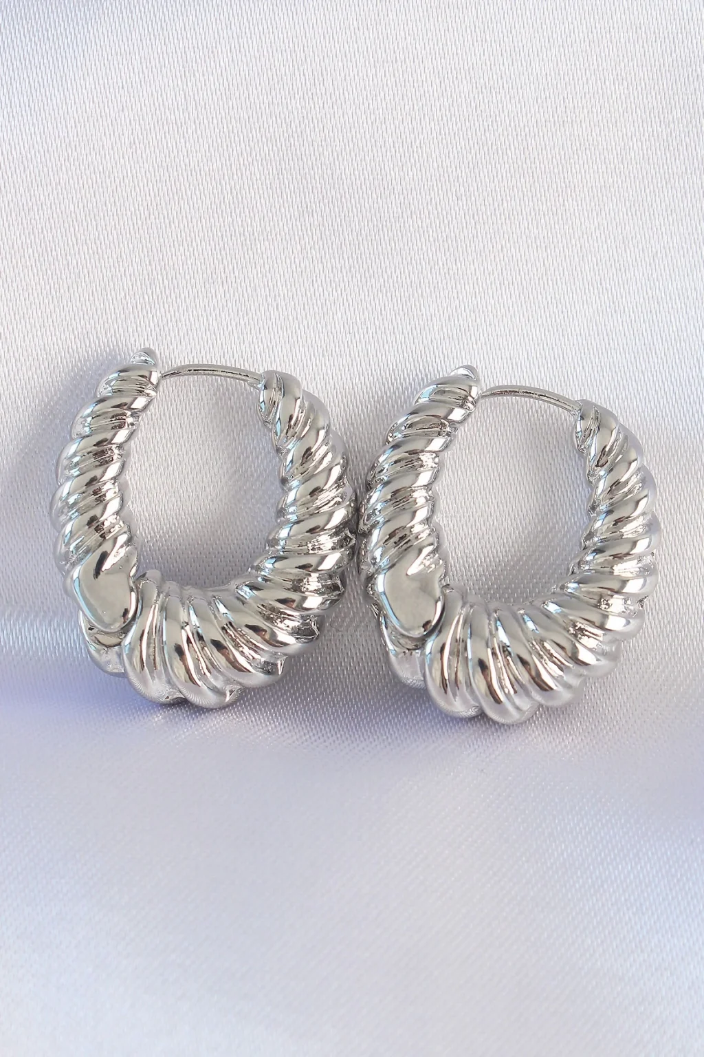 Pirinç Gümüş Renk Tırtık Detay Bombeli Halka Küpe