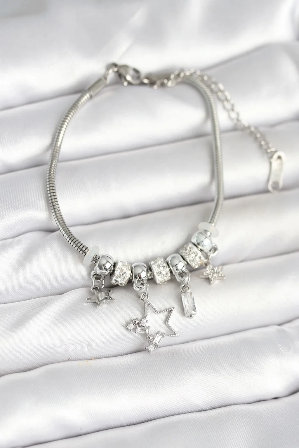 Pirinç Gümüş Renk Yıldız Charmlı Kadın Bileklik