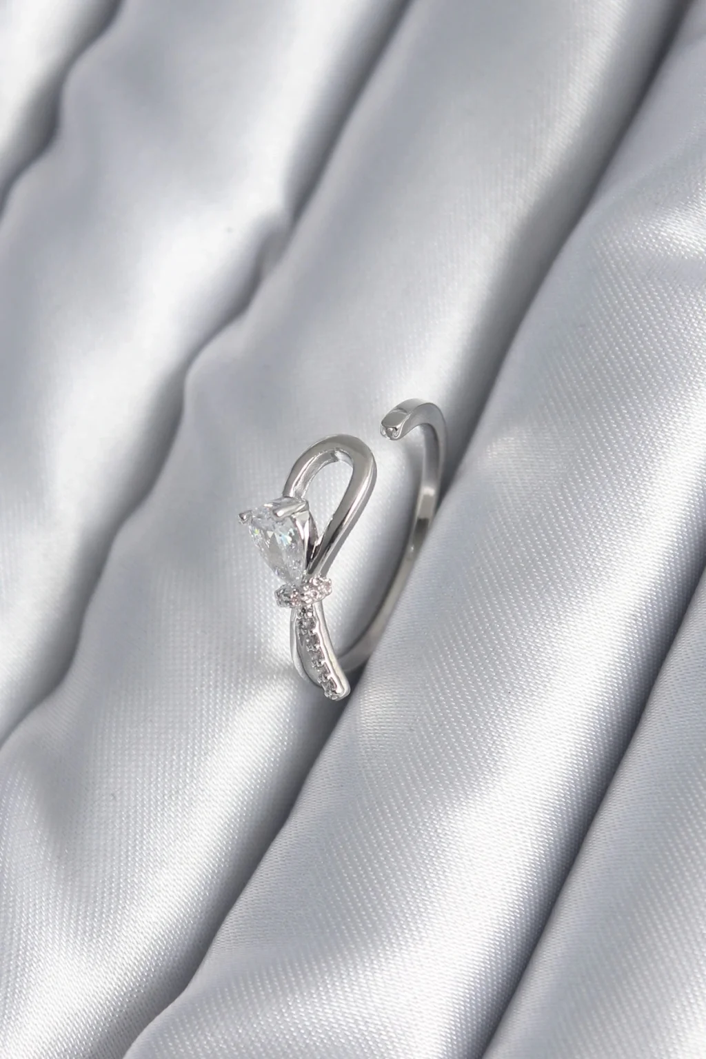 Pirinç Gümüş Renk Zirkon Taş Detay Kurdele Model Kadın Yüzük
