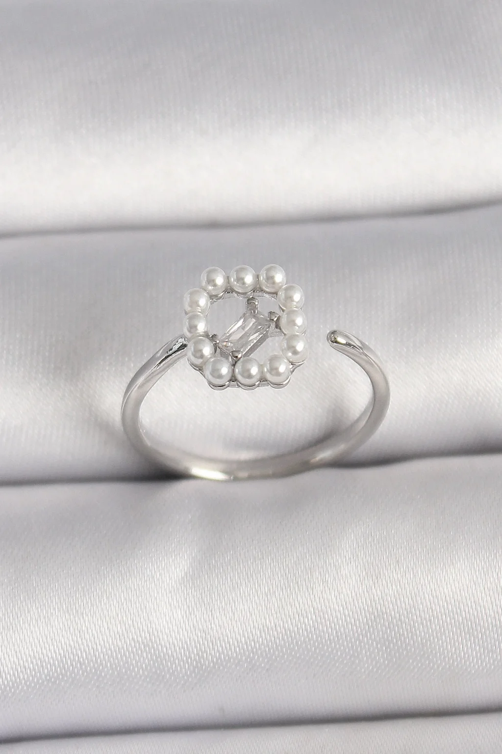 Pirinç Gümüş Renk Zirkon Taş Detaylı İncili Ayarlanabilir Yüzük