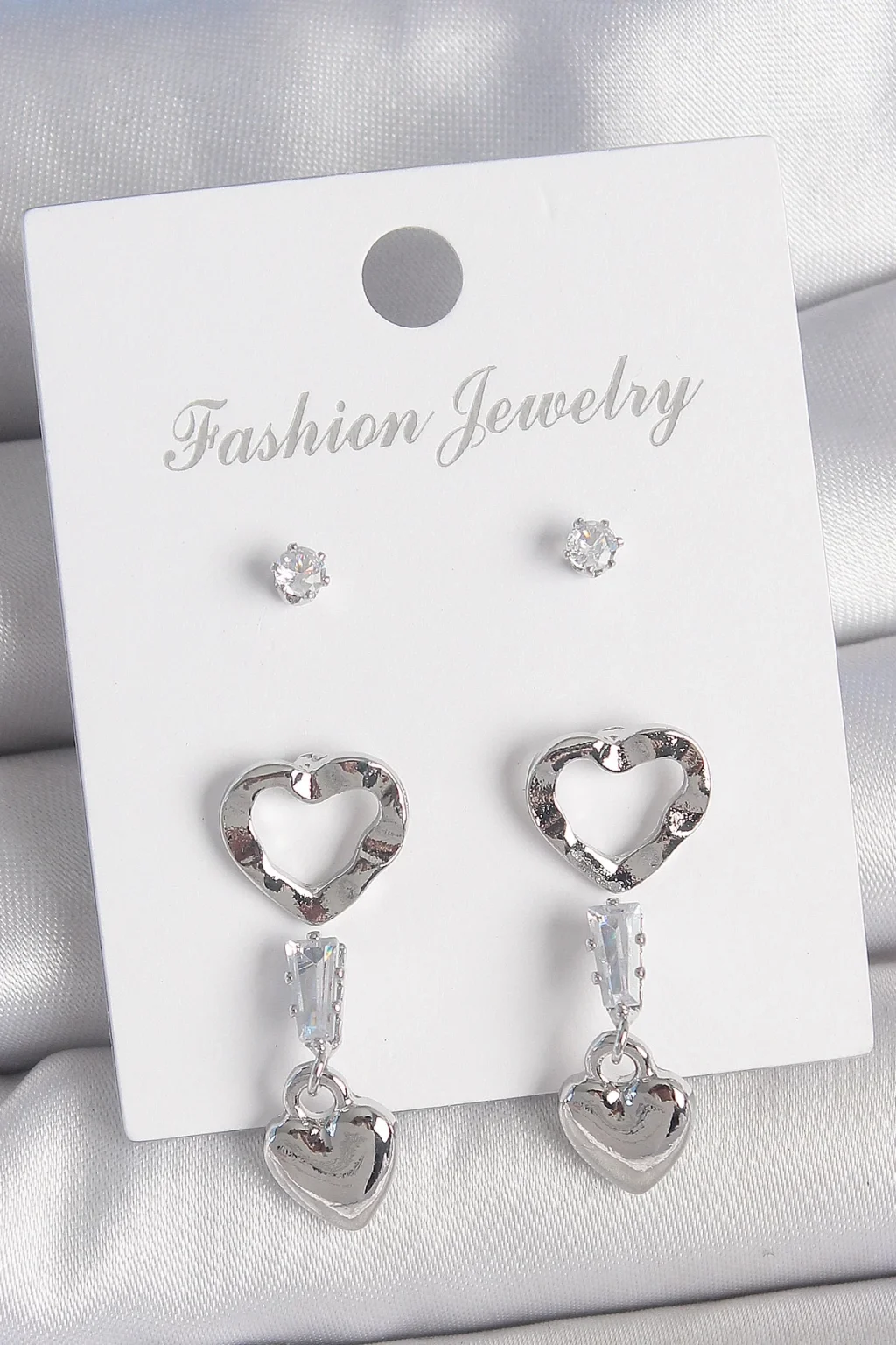 Pirinç Gümüş Renk Zirkon Taş Detaylı Sallantı Model 2 Çift Kadın Küpe Seti