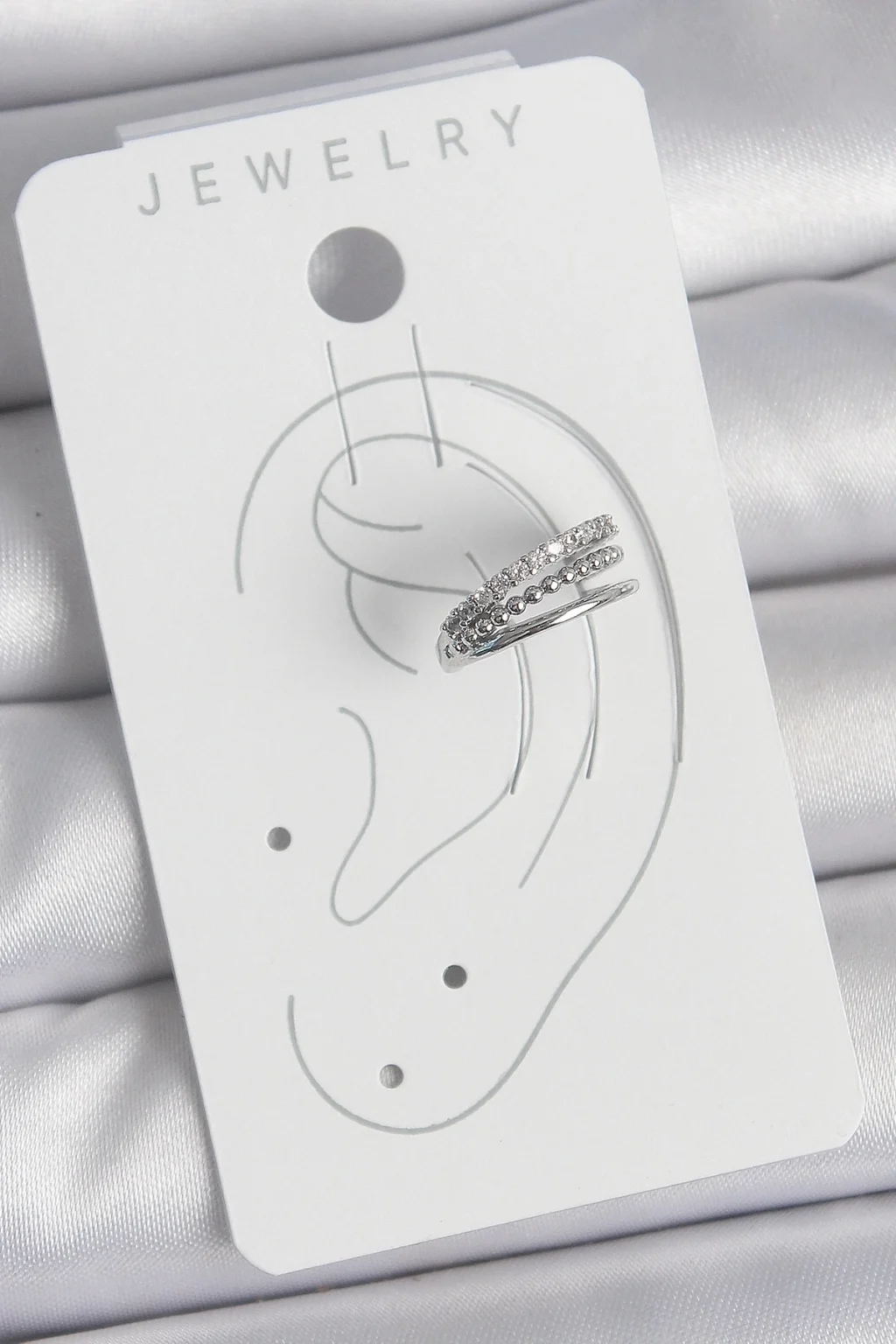 Pirinç Gümüş Renk Zirkon Taşlı 3'Lü Sıralı Model Kadın Kıkırdak Küpe