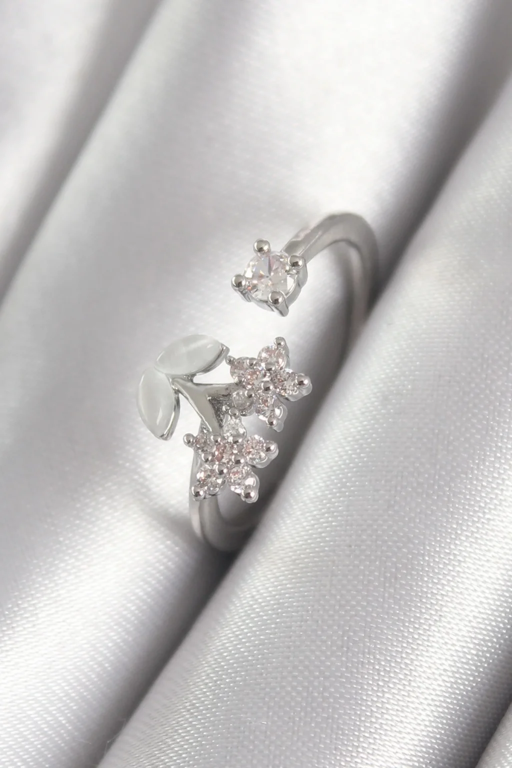 Pirinç Gümüş Renk Zirkon Taşlı Çiçek Model Kadın Yüzük
