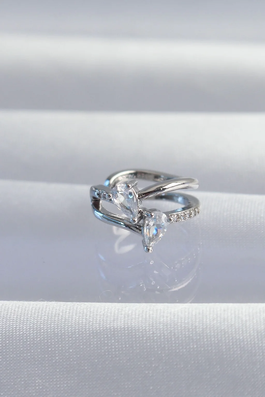 Pirinç Gümüş Renk Zirkon Taşlı Damla Earcuff Küpe