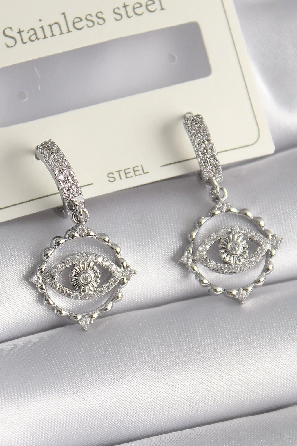 Pirinç Gümüş Renk Zirkon Taşlı Göz Model Kadın Küpe