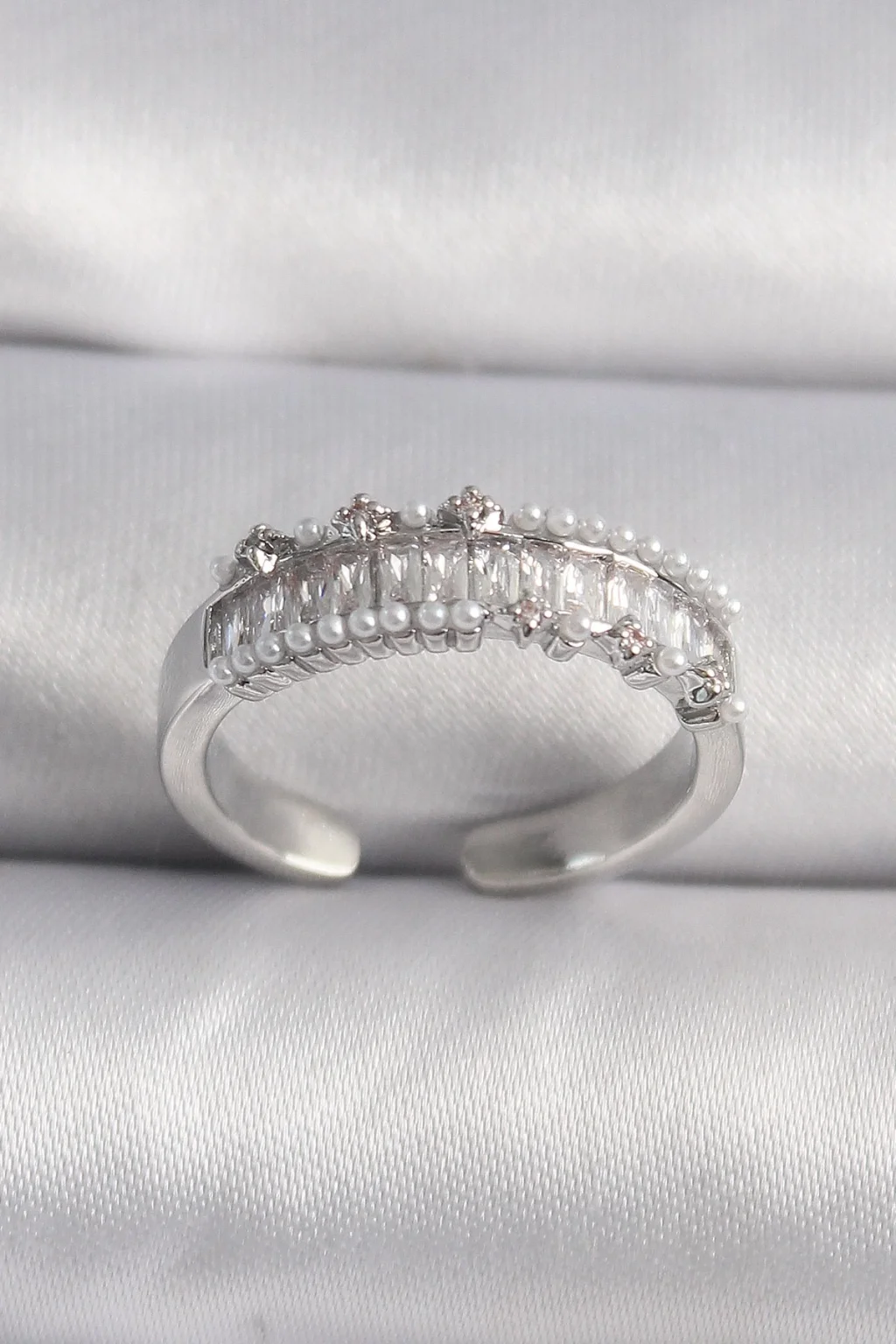 Pirinç Gümüş Renk Zirkon Taşlı İnci Detay VIP Seri Kadın Yüzük