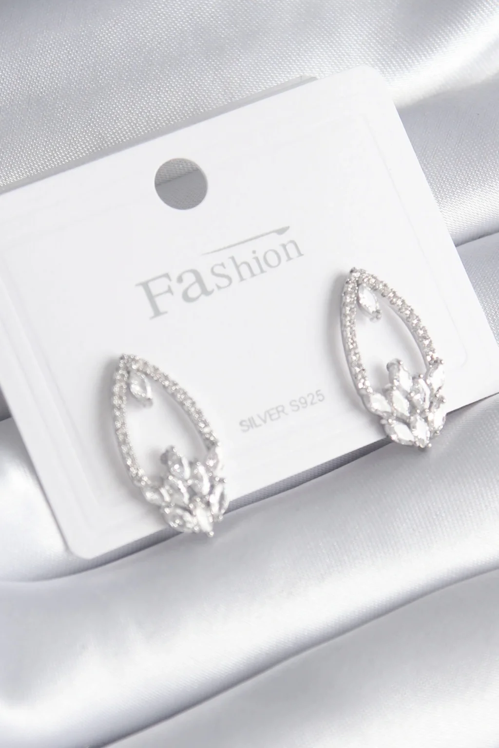 Pirinç Gümüş Renk Zirkon Taşlı Kadın Küpe