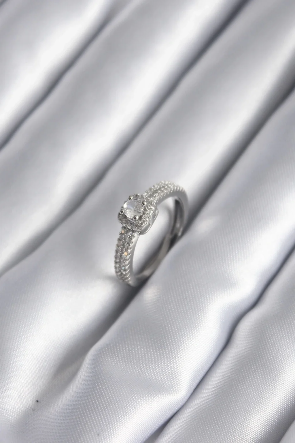 Pirinç Gümüş Renk Zirkon Taşlı Kadın Yüzük