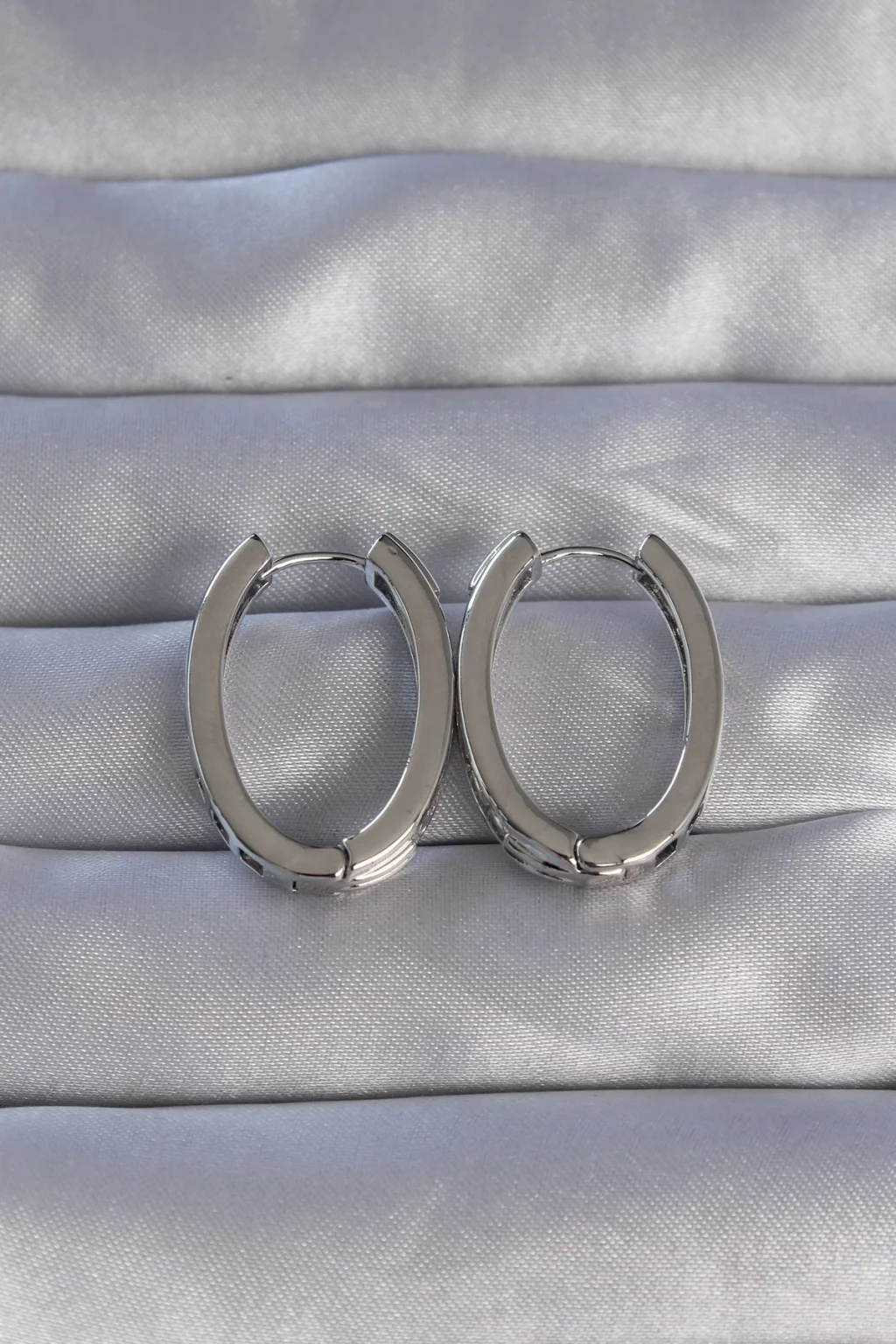 Pirinç Gümüş Renk Zirkon Taşlı Oval Model Küpe