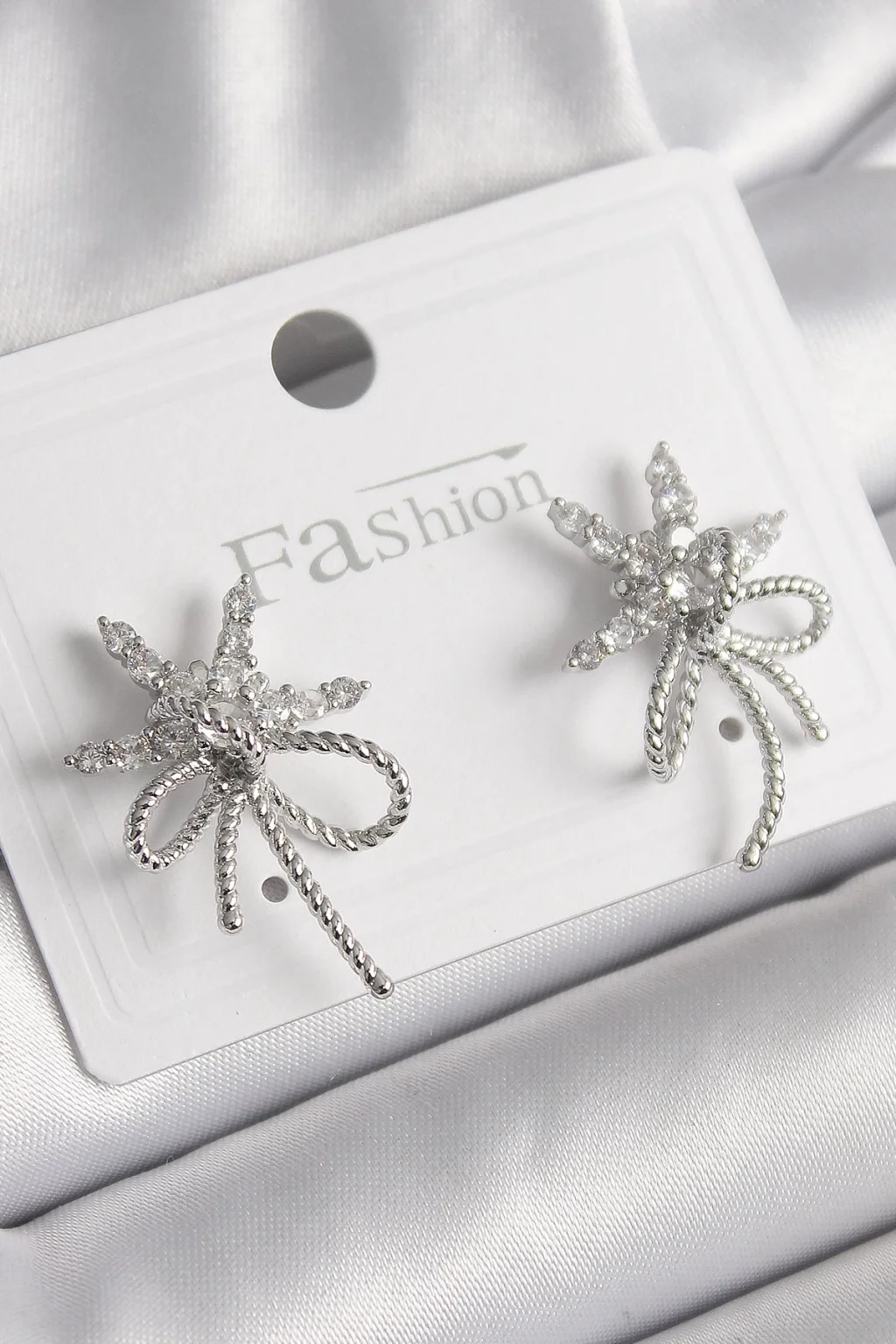 Pirinç Gümüş Renk Zirkon Taşlı Yıldız Düğüm Model Kadın Küpe