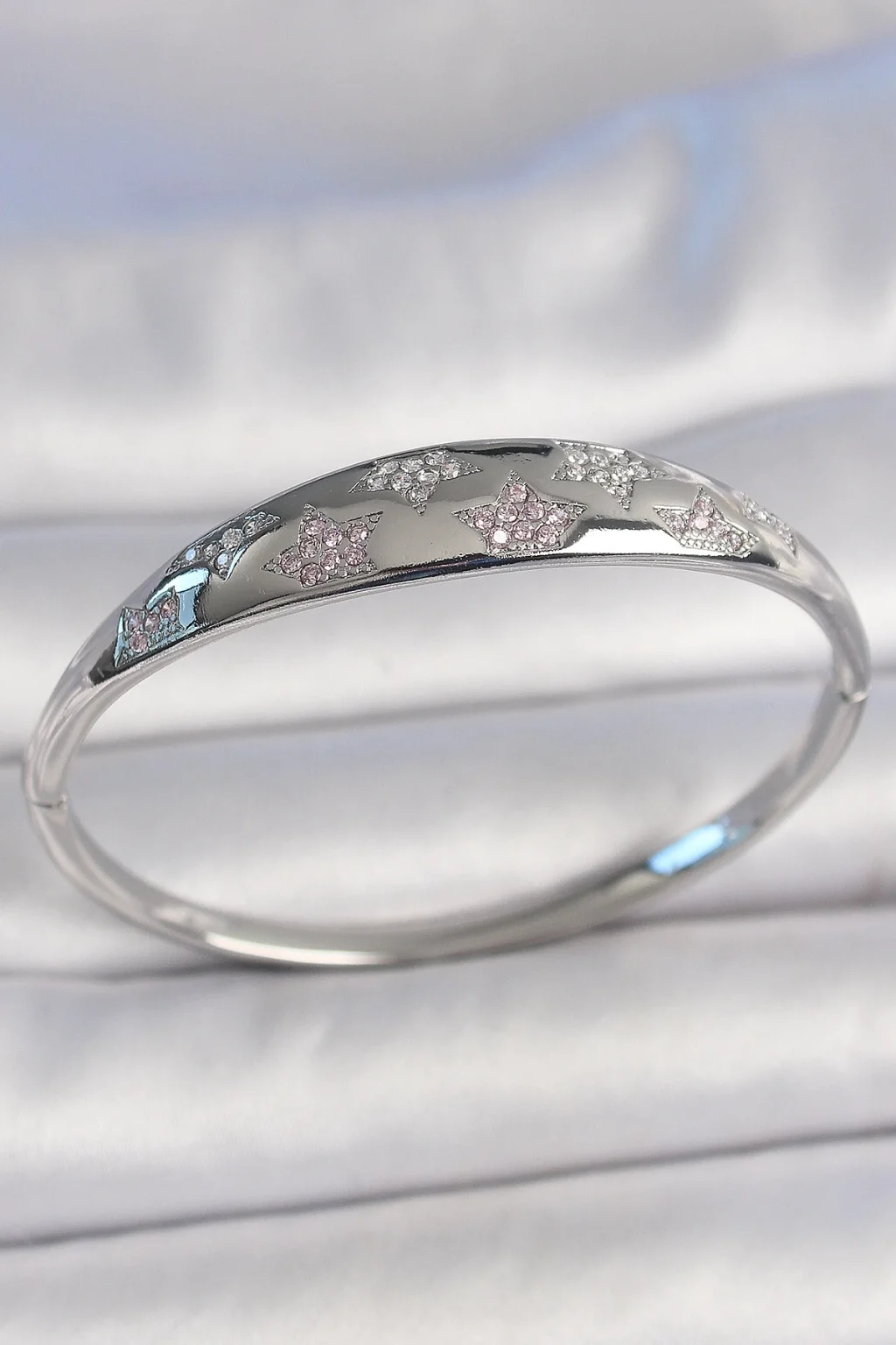 Pirinç Gümüş Renk Zirkon Taşlı Yıldız İşlemeli Kadın Kelepçe
