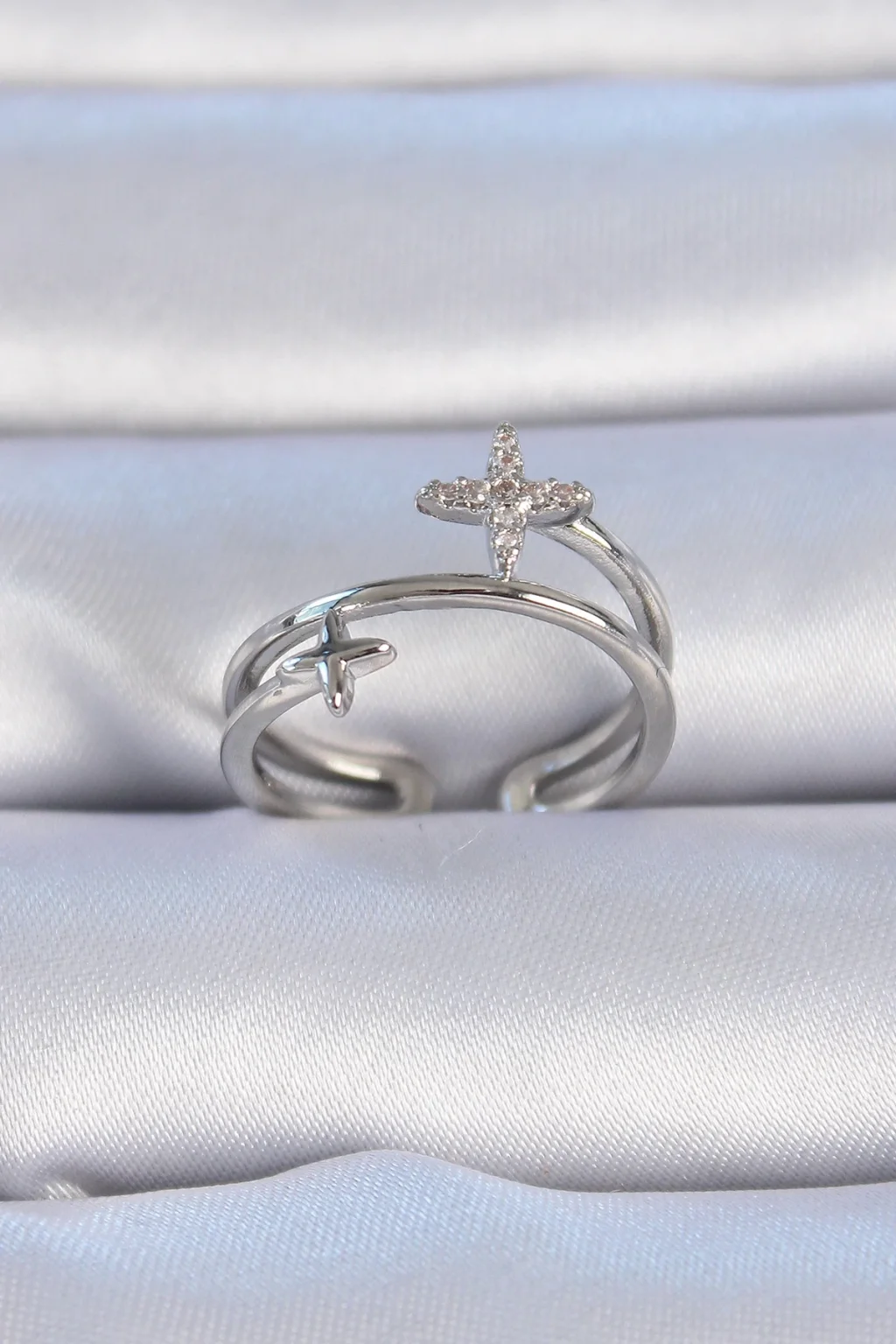 Pirinç Gümüş Renk Zirkon Taşlı Yıldız Model Kadın Yüzük