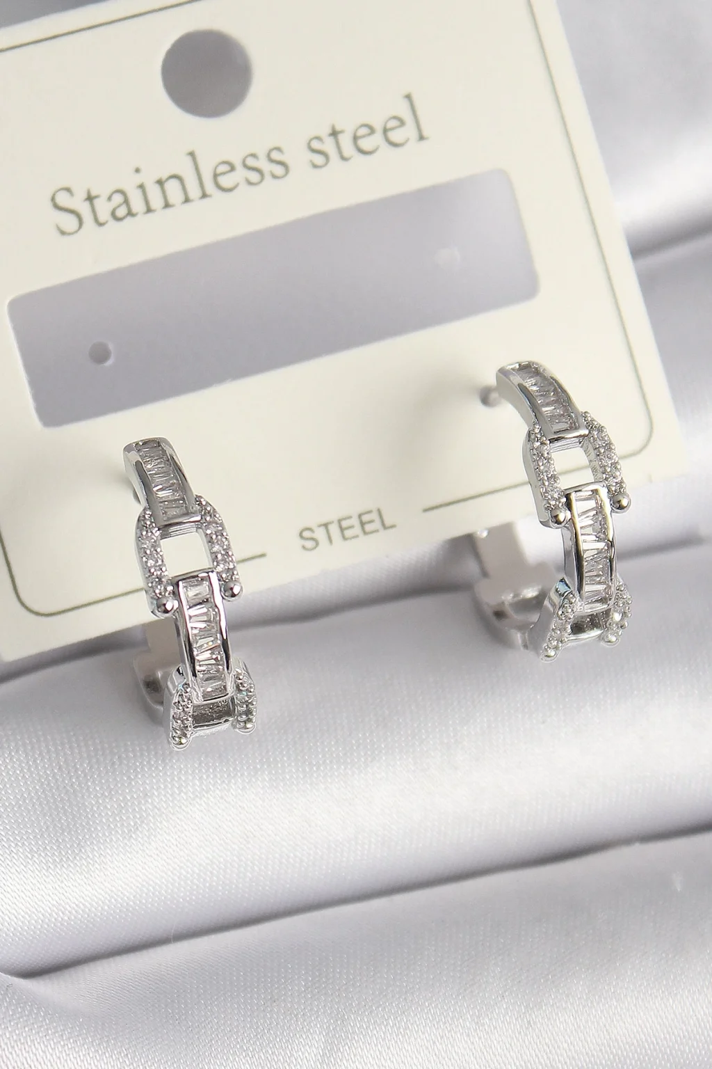 Pirinç Gümüş Renk Zirkon Taşlı Zincir Model Kadın Küpe