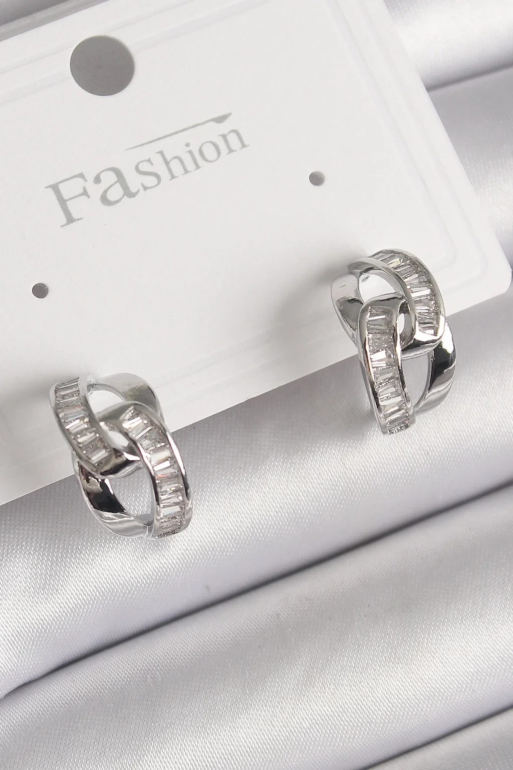 Pirinç Gümüş Renk Zirkon Taşlı Zincir Model Kadın Küpe
