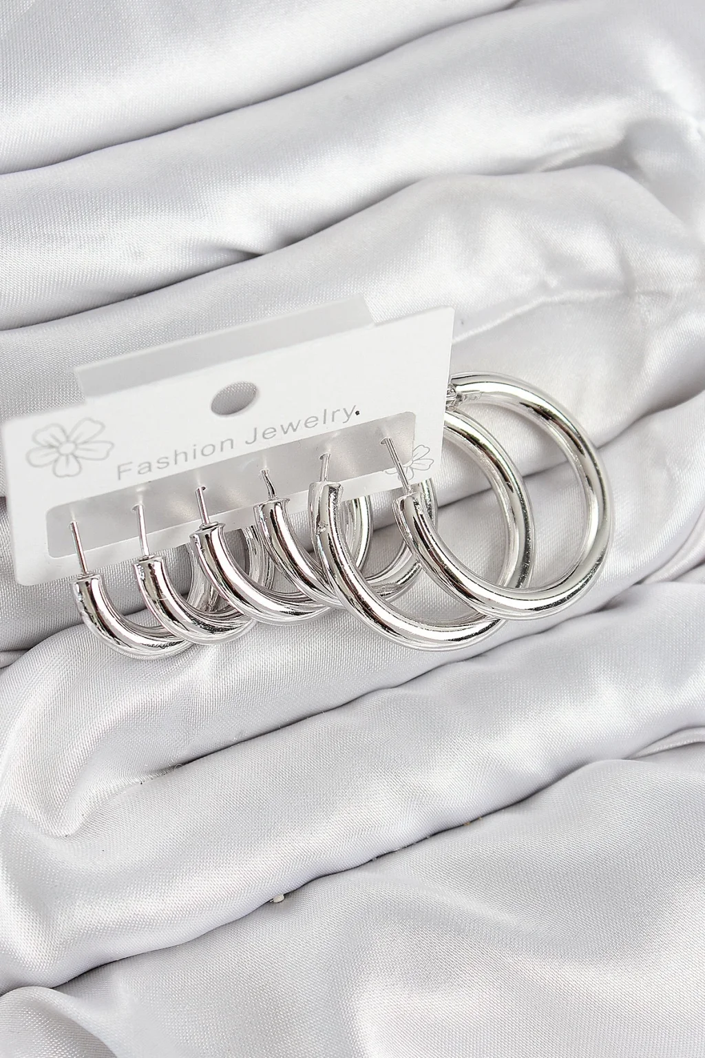 Pirinç Halka Model Gümüş Renk Kadın Set Küpe