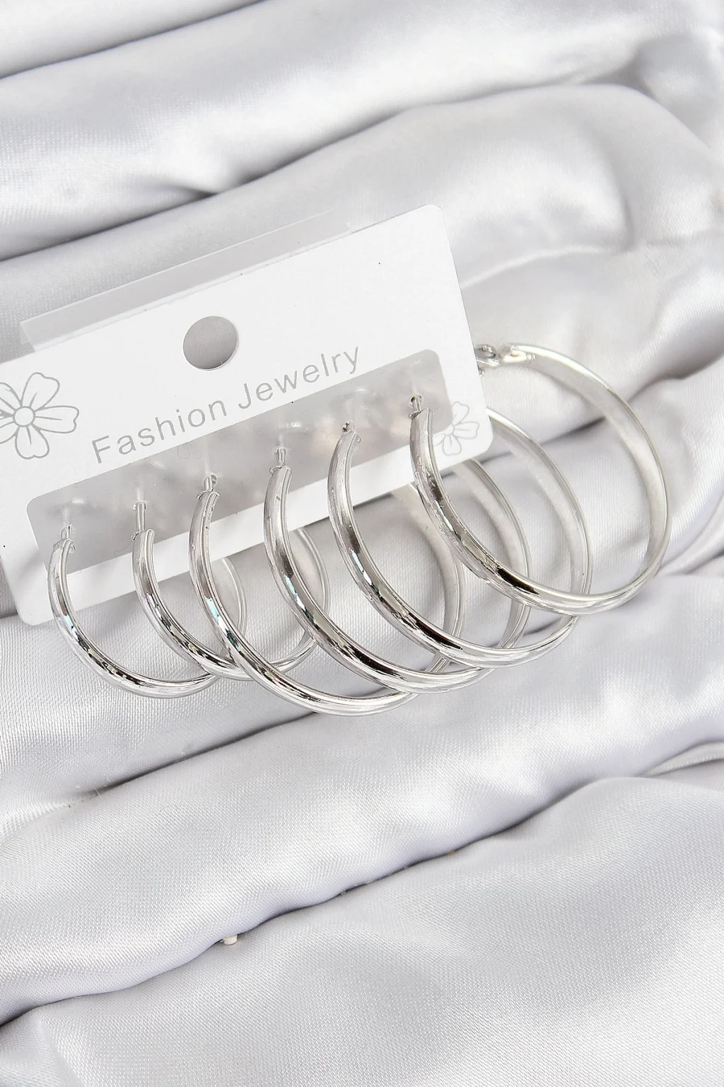 Pirinç Halka Model Gümüş Renk Kadın Set Küpe