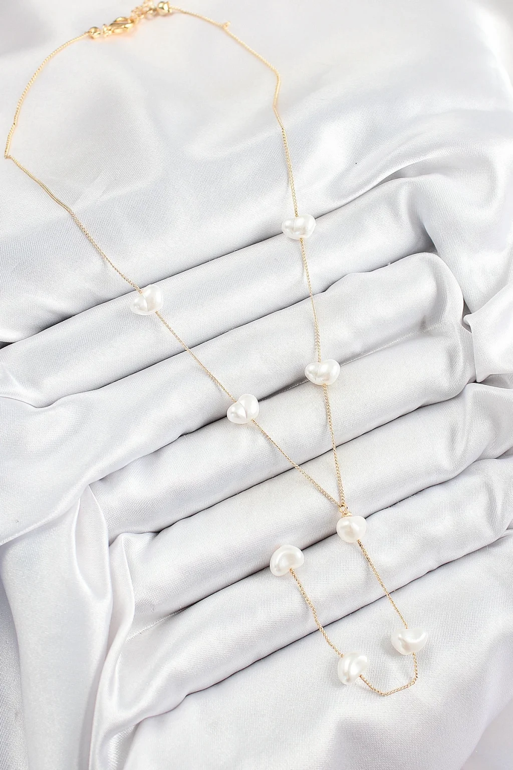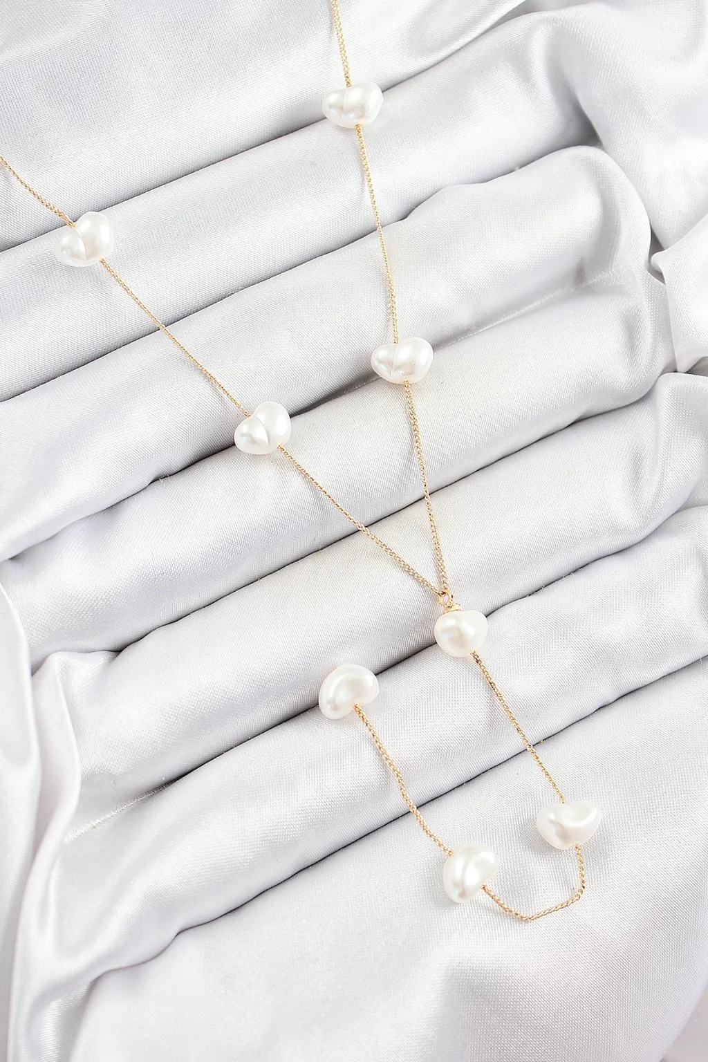 Pirinç İncili Kalp Figürlü Y Model Gold Renk Kadın Kolye