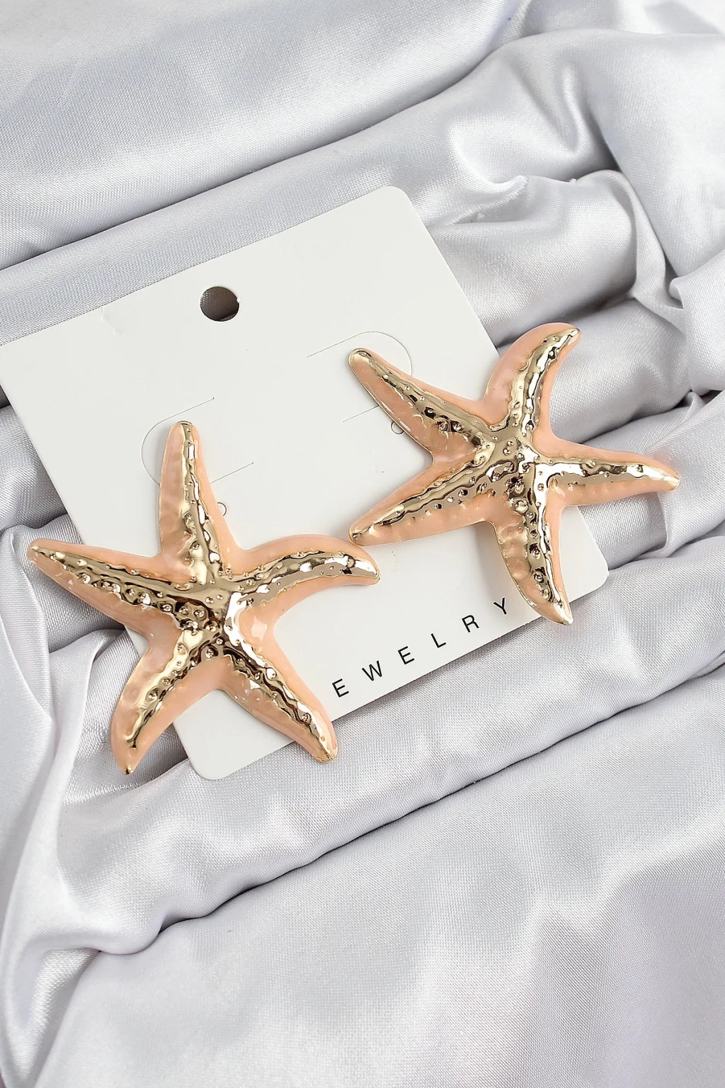 Pirinç Krem Deniz Yıldızı Model Vintage Kadın Küpe