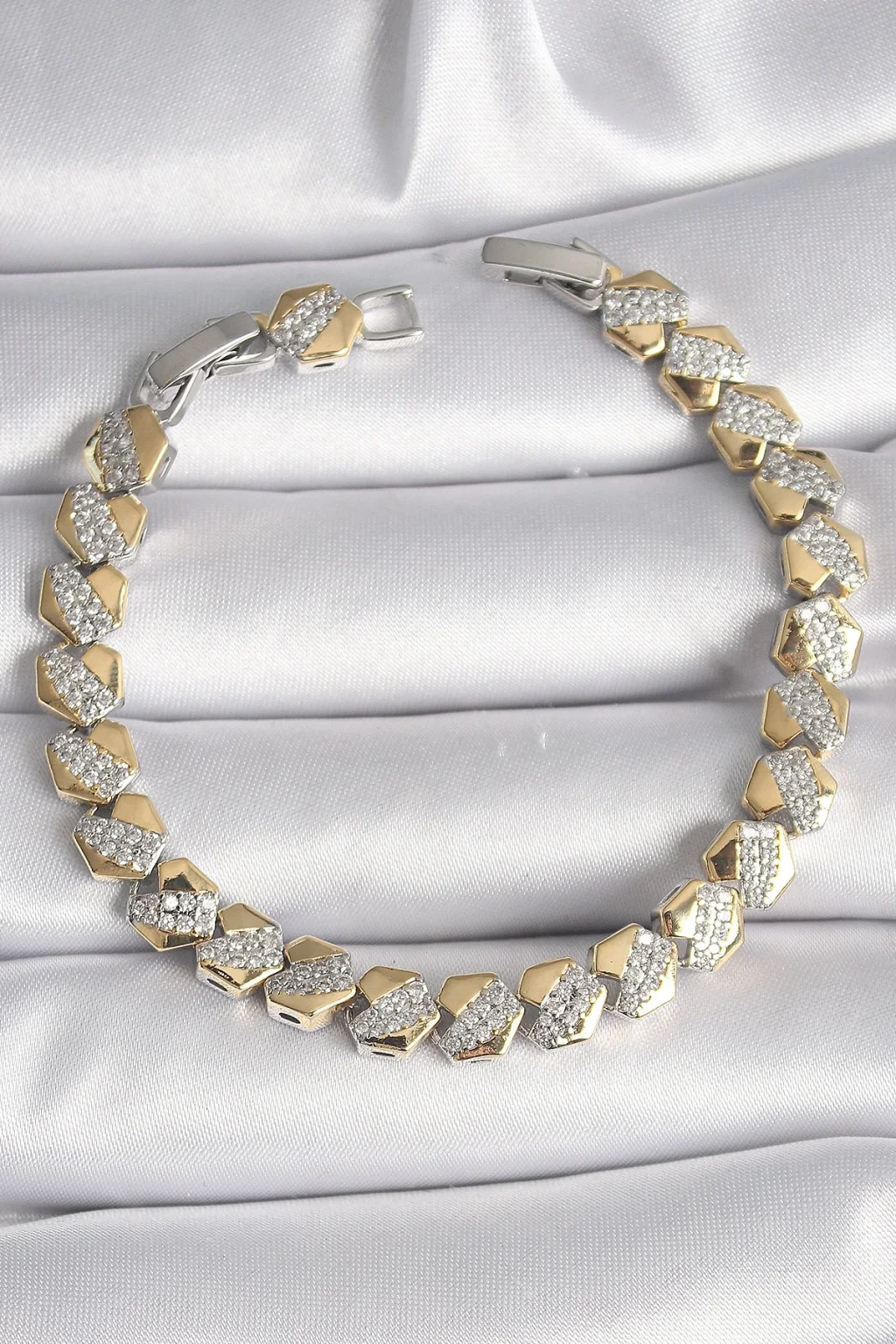 Pirinç Mix Renk Kalp Model Zirkon Taşlı VIP Seri Kadın Bileklik