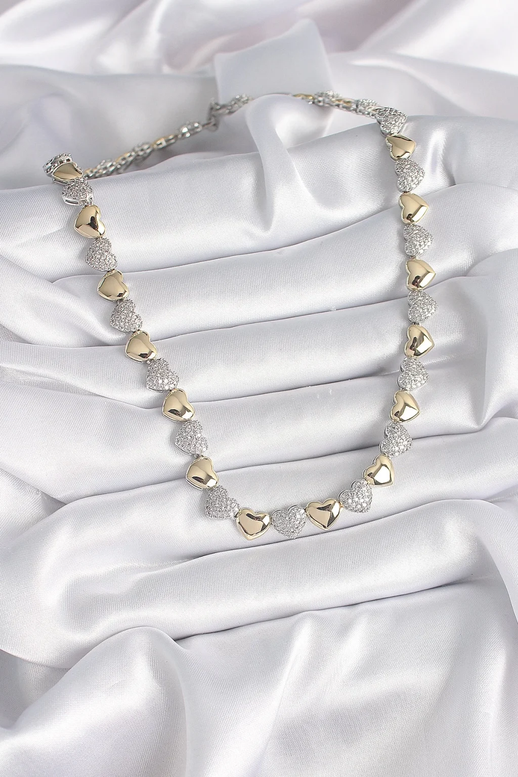 Pirinç Mix Renk Zirkon Taşlı Kalp Model VIP Exclusive Seri Kadın Kolye