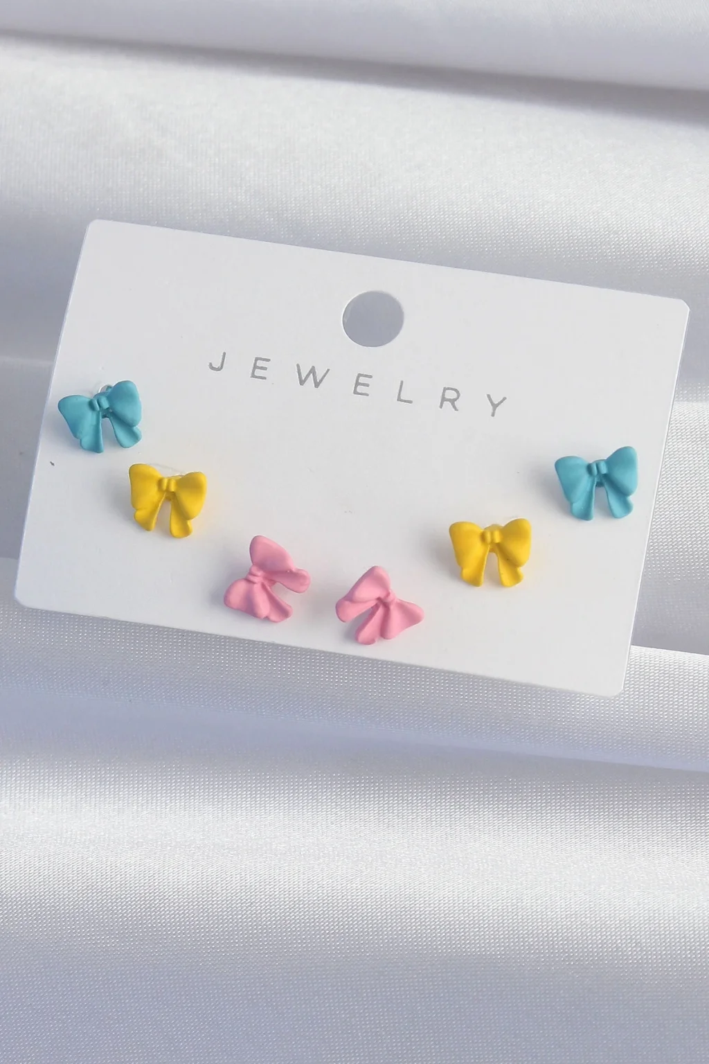 Pirinç Rengarenk Mineli Minimal Fiyonk Küpe Seti