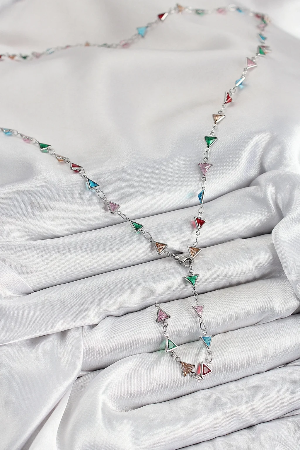 Pirinç Renkli Zirkon Taşlı Üçgen Model Gümüş Renk Kadın Y Kolye