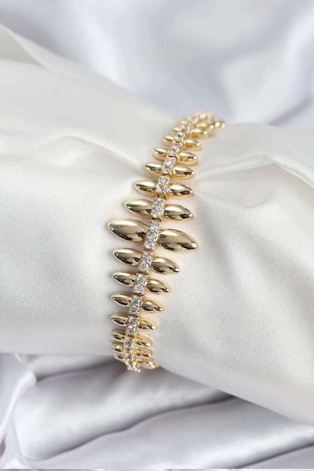 Pirinç VIP Seri Gold Renk Sıralı Damla Model Kadın Bileklik