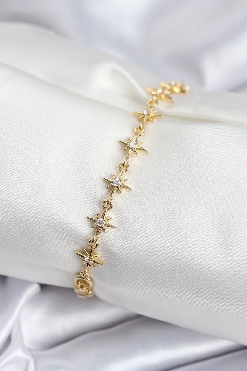 Pirinç VIP Seri Gold Renk Sıralı Kutup Yıldızı Kadın Bileklik