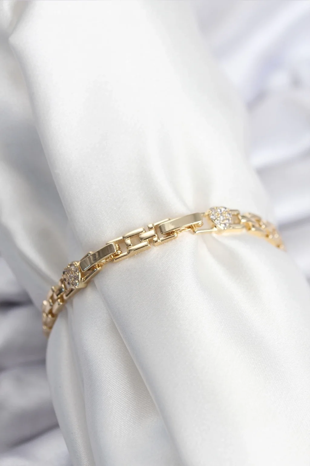Pirinç VIP Seri Gold Renk Zincir Model Kalpli Zirkon Taşlı Kadın Bileklik