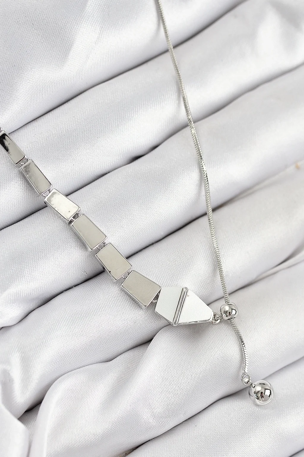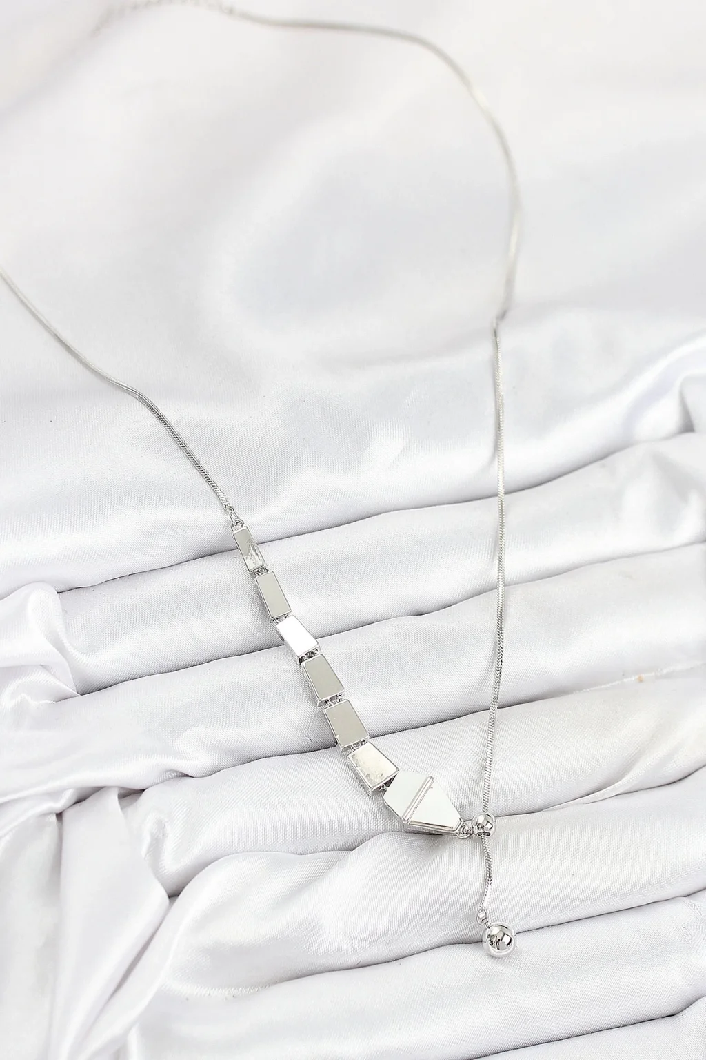 Pirinç Yılan Model Gümüş Renk Asansörlü Kadın Kolye