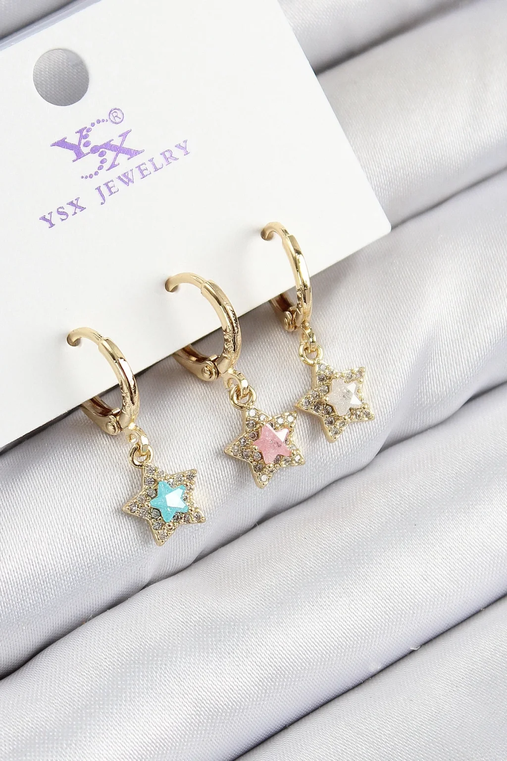Pirinç Zirkon Taşlı 3'lü Renkli Yıldız Model Gold Renk Kadın Küpe
