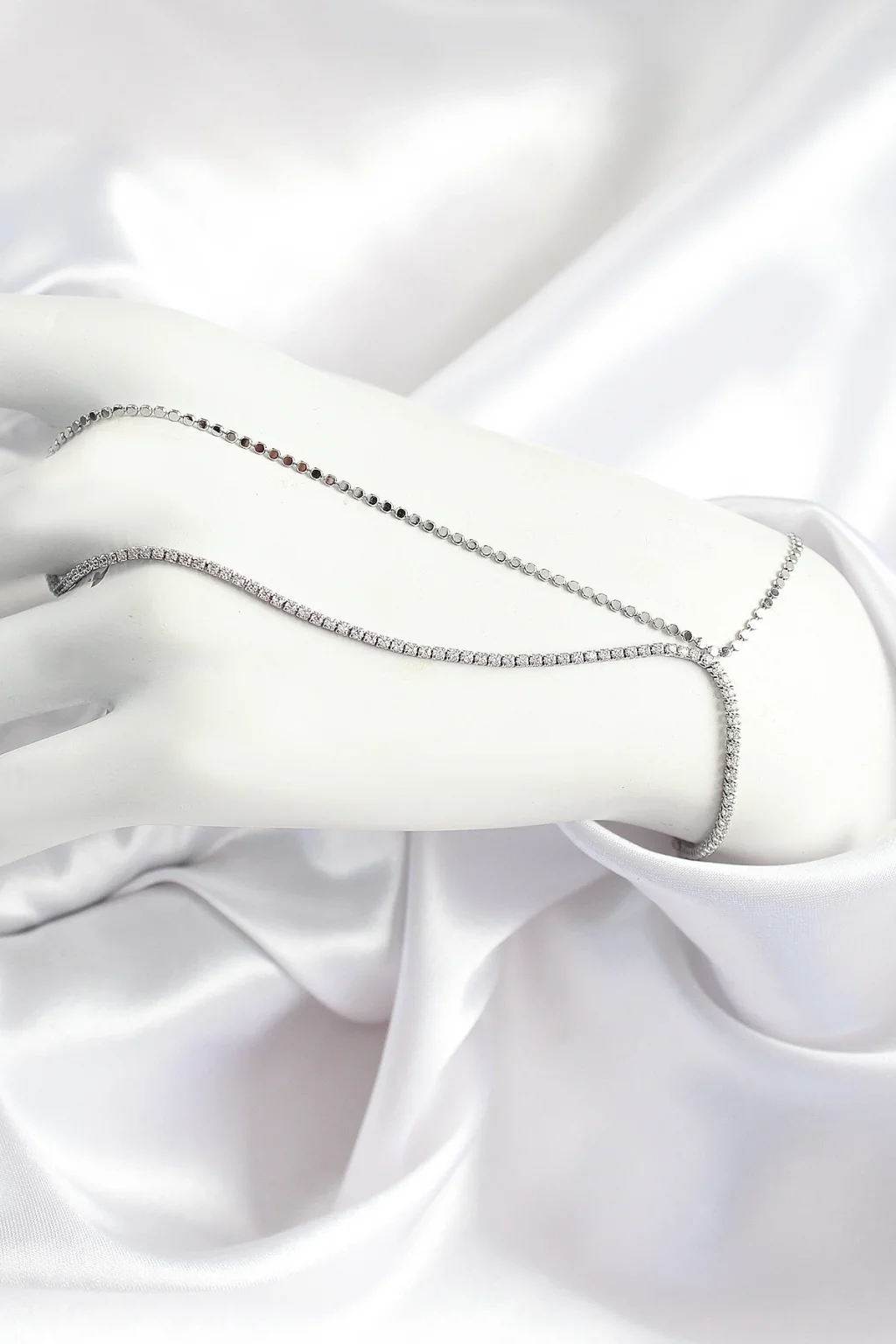 Pirinç Zirkon Taşlı Ezme Zincir Model Gümüş Renk Kadın Şahmeran