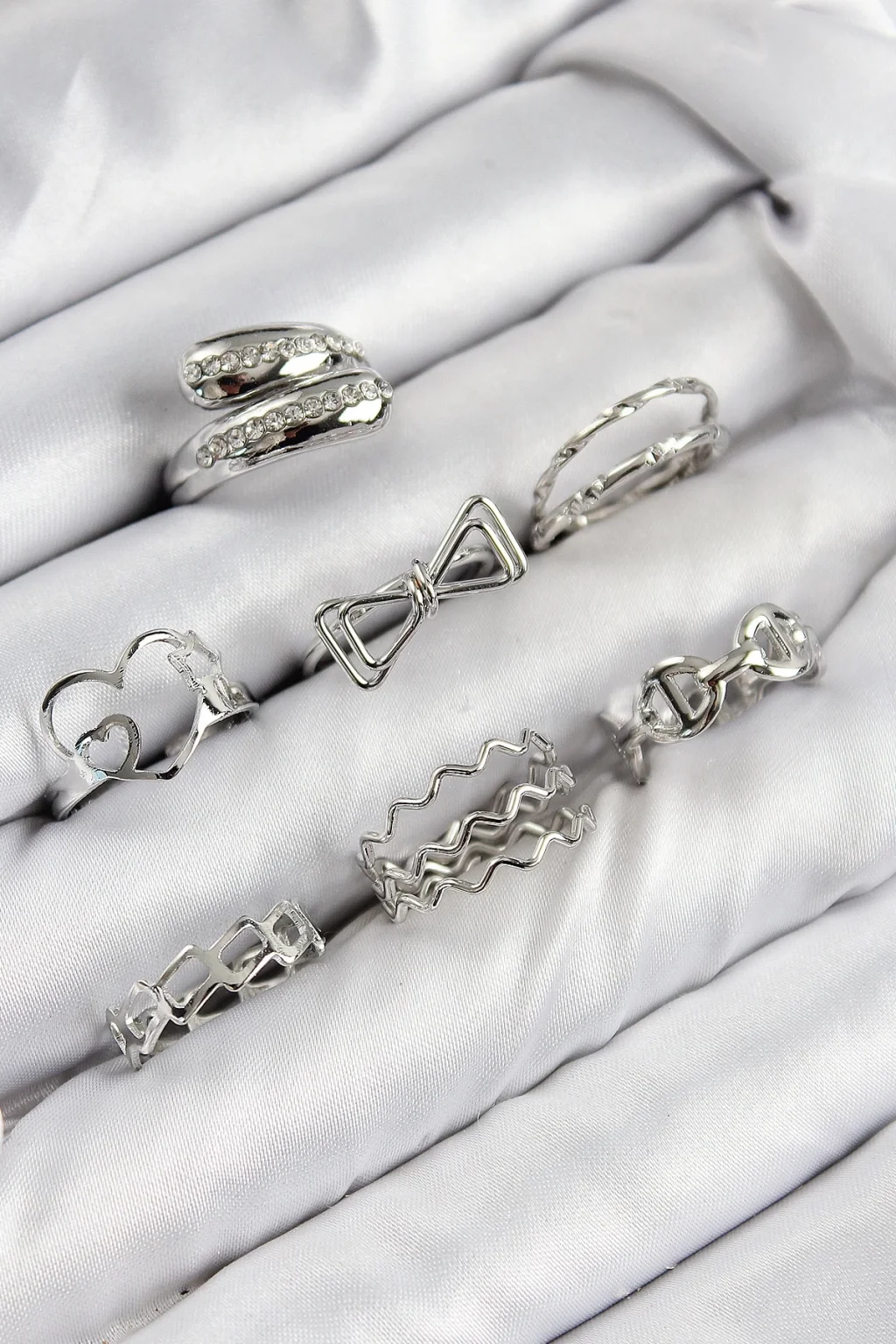 Pirinç Zirkon Taşlı Fiyonk Ve Kalp Model Gold Renk Kadın Yüzük Kombin Set